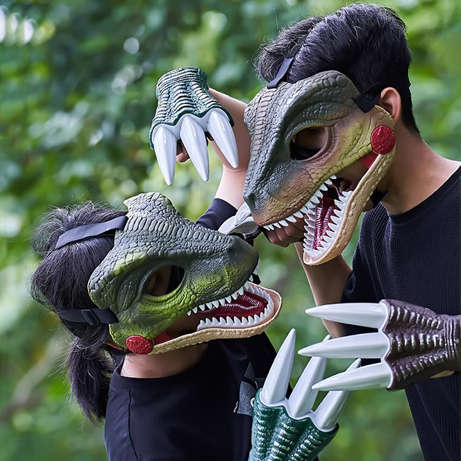Halloween Electric Tyrannosaurus Rex/Velociraptor Head Set Sound And Light Cos Toy